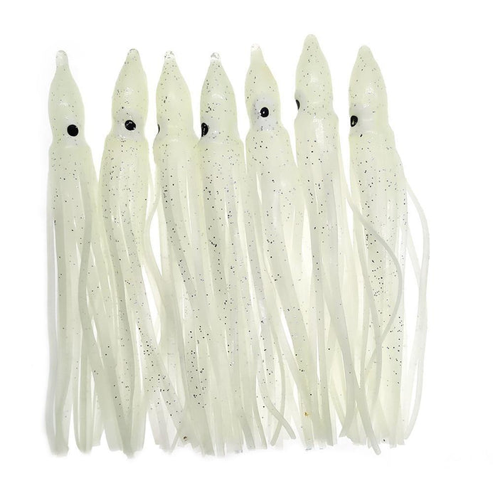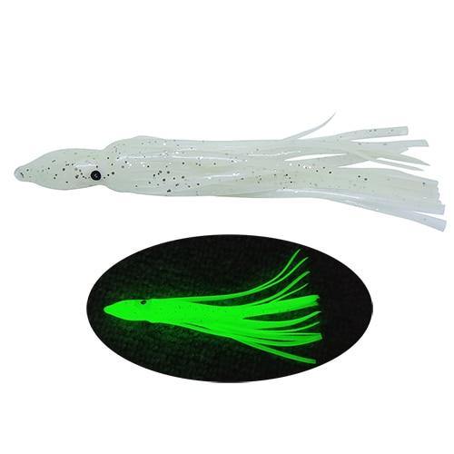 The Squid Skirts have a soft plastic body with big eyes and an alluring skirt that performs a tantalizing dance beneath the waves. They are luminous(glow), which is great for night fishing. Available in various sizes for targeting any size tuna, kingfish, sailfish, wahoo, or marlin.