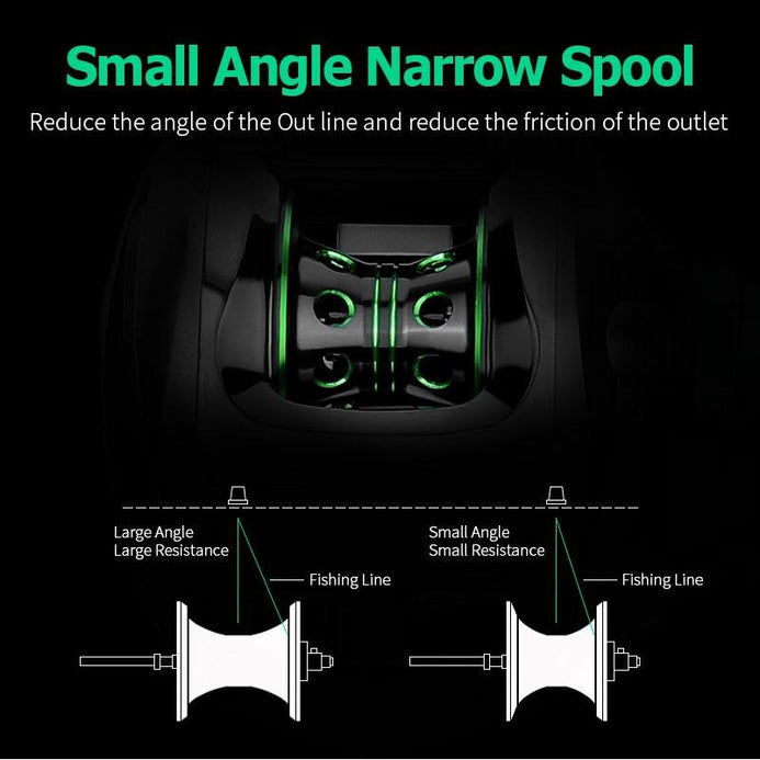 2. Small Angle Narrow Spool, Reduce the angle of the Out line and reduce the friction of the outlet. Upgrade Large Hole Imported Bearings.Precision Digital Gear, Won't feel the gears driving at the time of fishing..