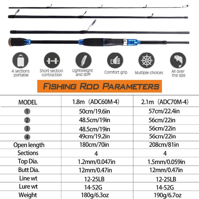 4 Section Fishing Rod 1.8M 2.1M Carbon Fiber